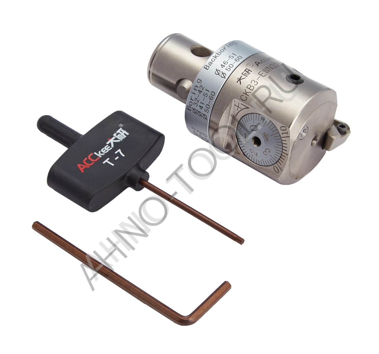 EWN3260 – это оправка, предназначенная для расточки отверстий с диаметром от 32 до 60 мм. Такой широкий диапазон достигается за счёт использования различных резцов.